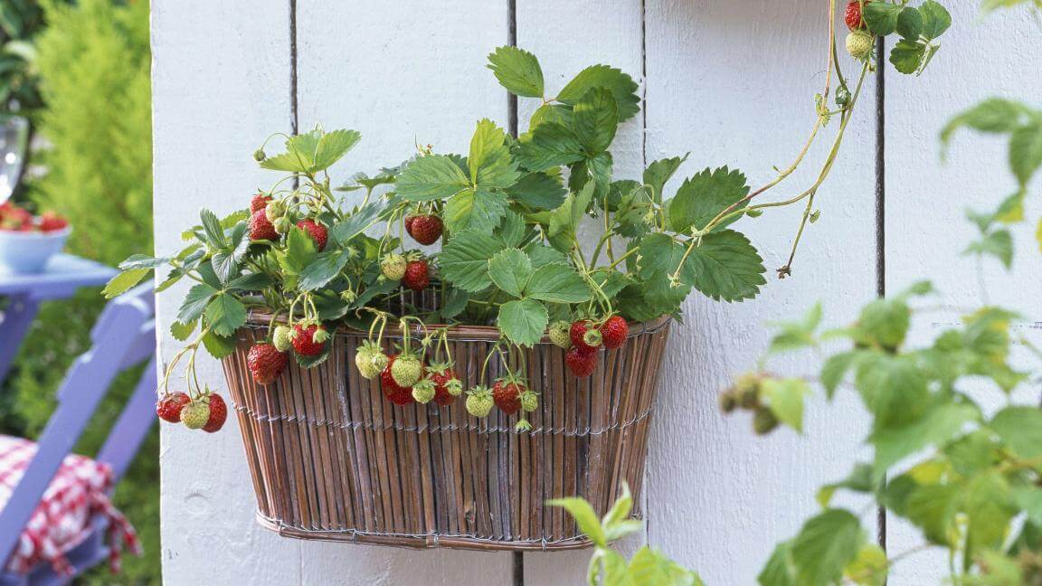 A rusztikus függőkosár dekoratív és praktikus megoldás az eper és más futónövények, például a muskátli vagy a csüngő paradicsom számára. A lógó hajtásokon könnyebben érik be a termés, kevésbé érintkezik a talajjal, mely tönkre teheti a gyümölcsöt. A függesztéshez használjunk erős kampókat vagy konzolt. Olyan vesszőből készült vagy fémvázas kosarat válasszunk, amelynek a belseje légáteresztő kókuszrétegből készült. Ültetéskor adjunk a földhöz komposztot. Hogy elkerüljük a gombás fertőzéseket, ügyeljünk arra, hogy a talaj laza maradjon.