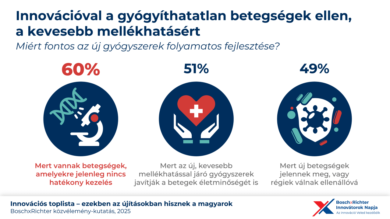 Bár alapvetően magasak az elvárásaink a gyógyszerekkel szemben. A BoschxRichter közös kutatásából kiderült, az új, innovatív gyógyszerek kifejlesztését a magyarok: