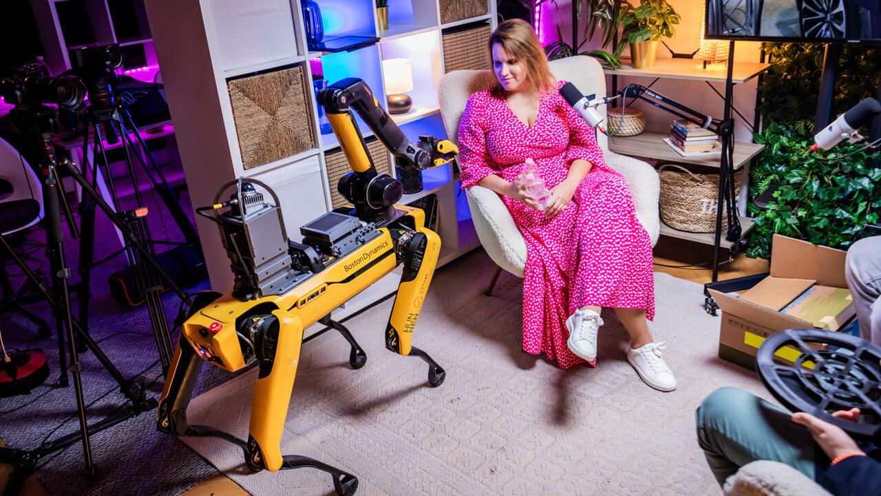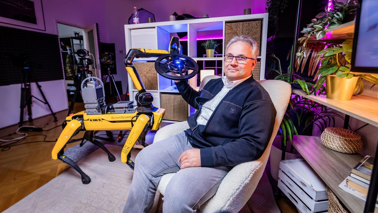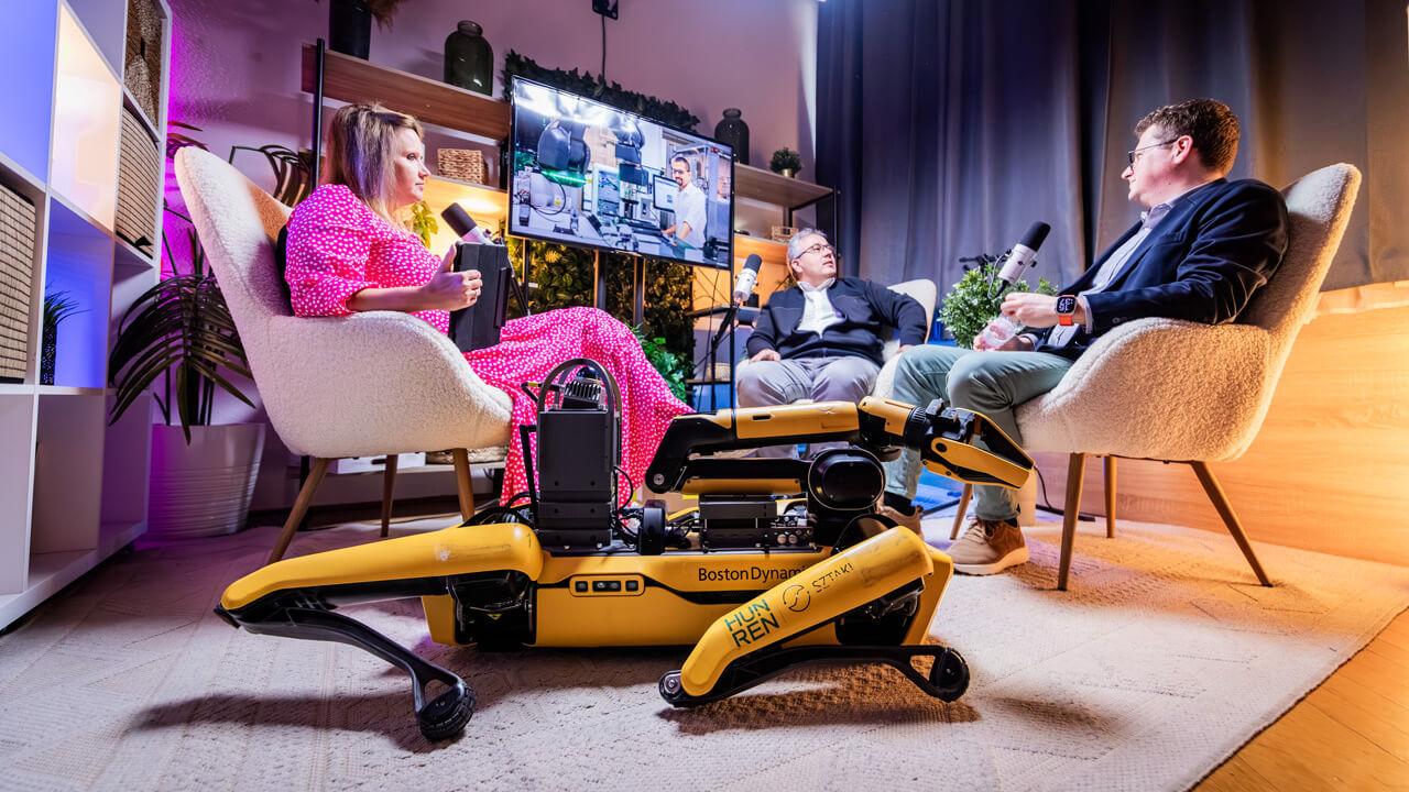 Az is látható, hogy éppen egy olyan robbanásszerű fejlődést élünk át a generikus mesterséges intelligencia (MI) miatt, amely hatással lesz a robotikára is, főként, ha csevegni akarunk a gépekkel. Ugyanakkor vannak más területek is, ahol az elmúlt évtizedben látványos fejlődés történt. Majdik András László szerint a MI például a megerősítéses tanulásban (reinforcement learning) is sokat fejlődött, amely még ügyesebb humanoid és más közlekedő robotokat eredményezett. Ilyen például a Boston Dynamics felboríthatatlan „robotkutyája”, amelyből egy példányt a HUN-REN kutatója a stúdióba is magával hozott.